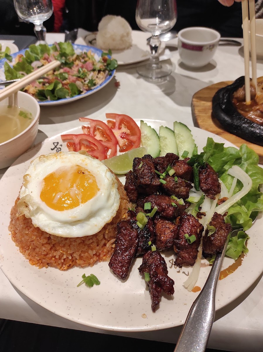 One of the standout dishes at Lao Douang Dy is the Banh Can, a flavorful Laotian specialty that will transport your taste buds straight to Southeast Asia. If you’re in the mood for something hearty, the Riz Au Boeuf Loc-lac Et Oeuf Au Plat is a must-try, combining tender beef with a fried egg on top of aromatic rice. The Nouilles Légumes Porc Laqué is another popular option, featuring beautifully glazed pork and perfectly cooked noodles with fresh vegetables. For those craving a richer dish, the Bœuf Au Lait de Coco Et Curry Avec Riz 70 delivers a mouthwatering balance of coconut milk and curry, served with a generous portion of rice. And if you enjoy a bit of spice, the Potage Pimenté Au Lait de Coco - Boeuf Ou Poulet brings the perfect blend of heat and creaminess to your bowl.